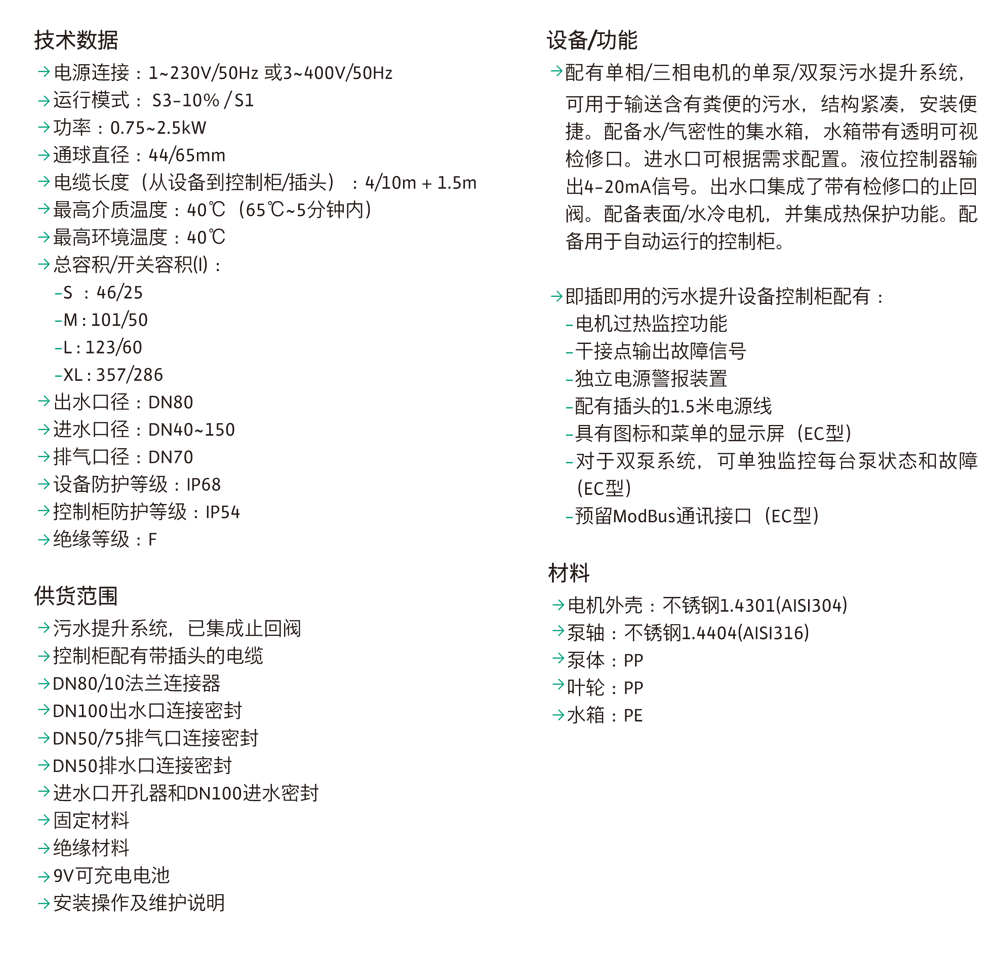 德国原装进口,外置密闭式单泵系列,大通道不锈钢涡流式水泵,适用于略小流量及扬程,负一及负二层需污水提升、排放的别墅、会所等场所,品质一流,稳定可靠。