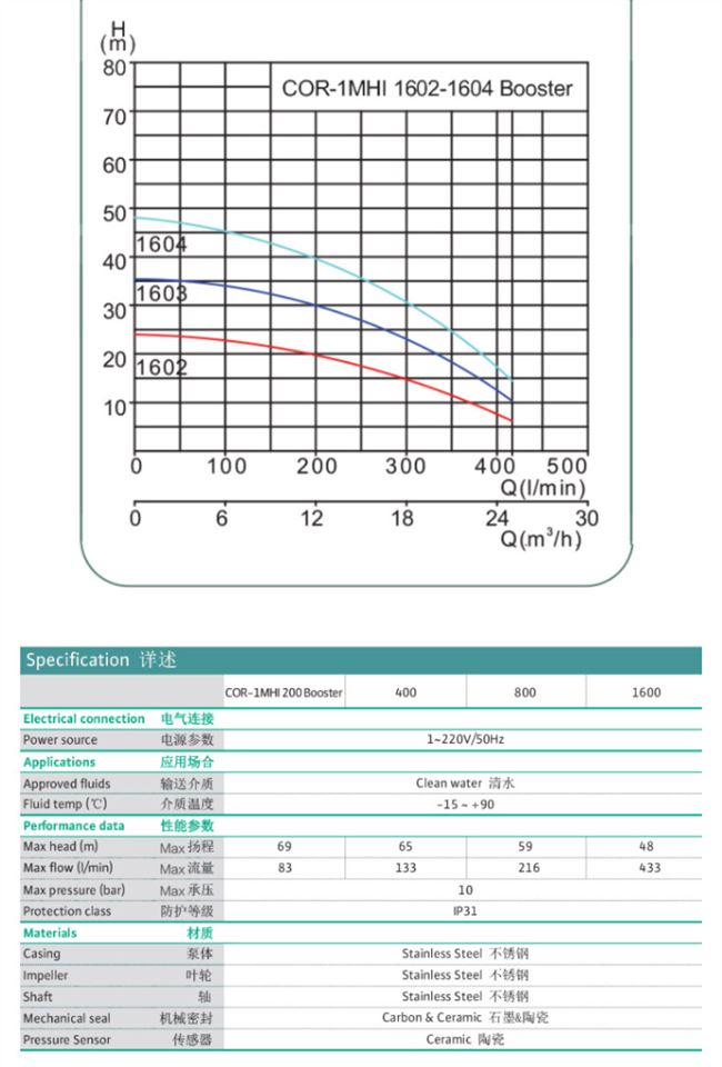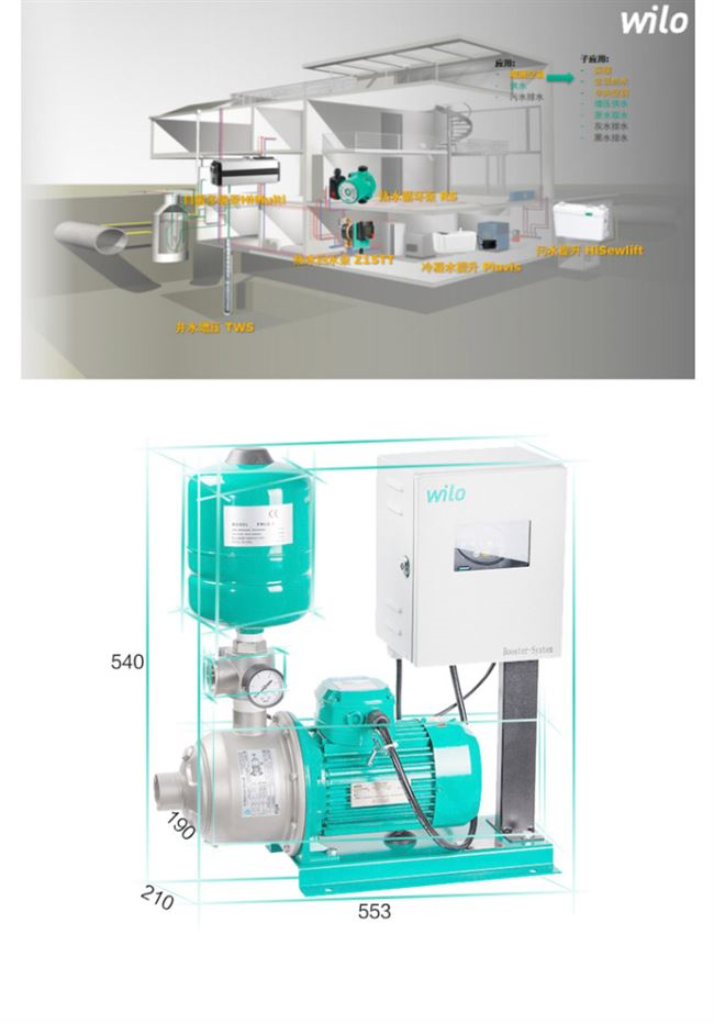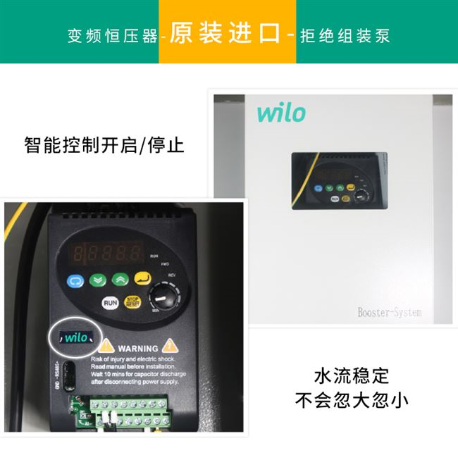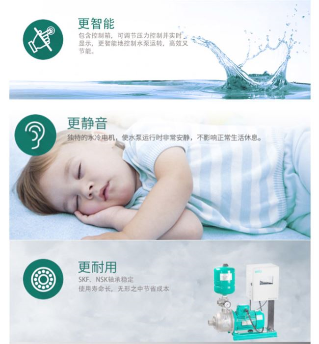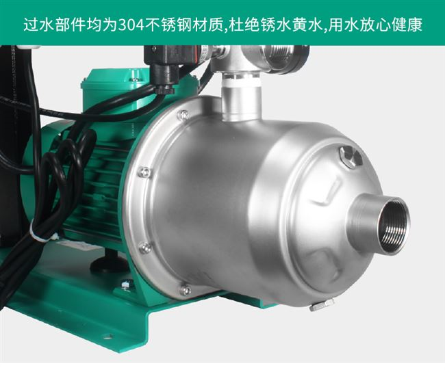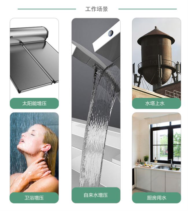 集水泵、控制系统、气压罐、压力变送器为一身,主要过流部件304不锈钢,适用于自来水、太阳能增压等。